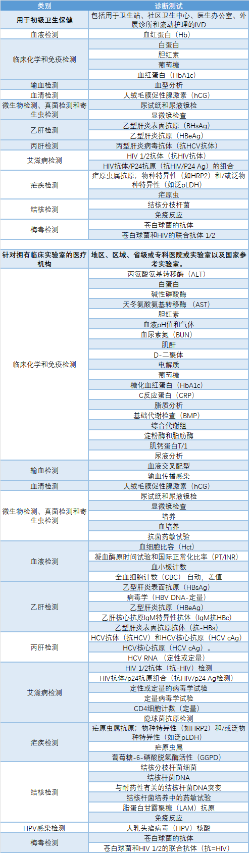 表3 | 世衛(wèi)組織基本體外診斷產(chǎn)品示范清單(EDL)