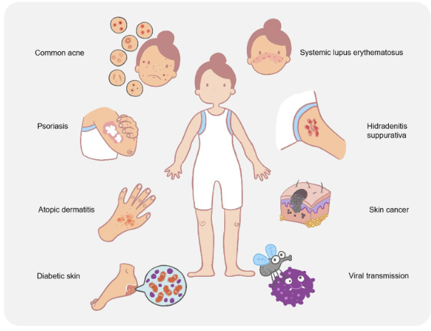 皮膚作為身體最大的器官,是預防疾病的屏障,同時定植著各種有益的細菌。皮膚微生物菌群在人類健康和疾病中發(fā)揮著重要作用。人體皮膚屏障的破壞、共生菌群與病原體之間的不平衡會導致皮膚疾病,甚至系統(tǒng)性疾病。