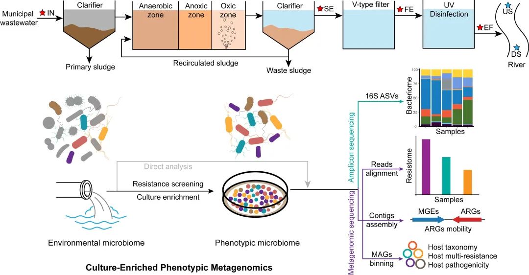 圖1. 本研究提出了表型宏基因組方法學(xué)并應(yīng)用于污水環(huán)境靶標(biāo)耐藥組檢測。