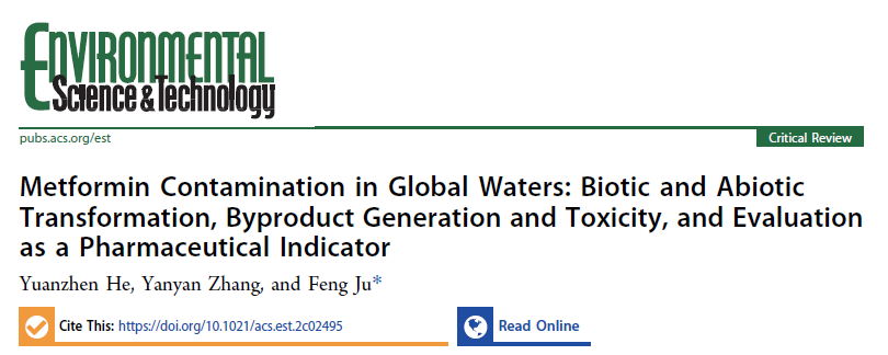 He YZ, Ju F* et al. 2022. Prevalence, production, and ecotoxicity of chlorination-derived metformin byproducts in Chinese urban water systems. Science of The Total Environment, 816, 151665.
